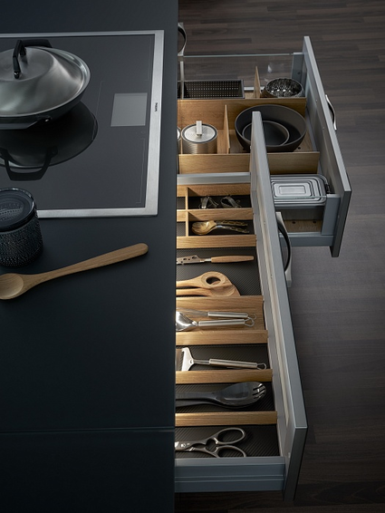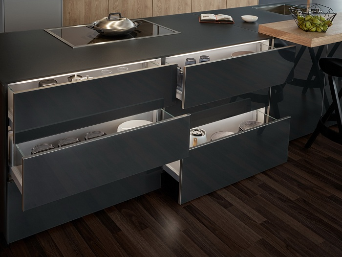 Удобная кухня SYNTHIA-C - CERES-C станет вашей любовью с первого приготовления пищи. Хотя в продаже такие немецкие кухни LEICHT появились уже довольно давно, увидев это чудо искусства, относящееся к одним из лучших образцов современного стиля, мало кто сможет отказать себе в удовольствии стать ее обладателем. Производитель сделал упор не только на оригинальное цветовое оформление и универсальность, но и на функциональность. Множество ящичков и шкафчиков рассчитаны на максимально удобное хранение кухонных принадлежностей, а экономное освещение означает существенную экономию средств.