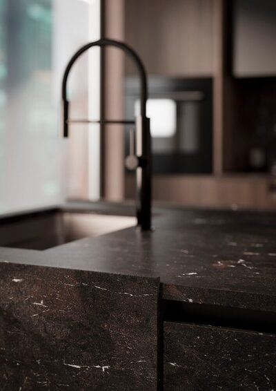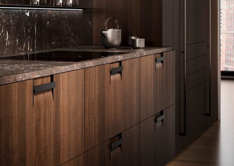 Концепция Q объединяет ручку и дверцу в единое эстетическое целое. Ручка не крепится как отдельный элемент на фасад мебели, а плавно вписывается в волнообразное углубление дверцы. Такой дизайн подчеркивает органичную эстетику серии, превращая дверцу и ручку в гармонично спроектированный элемент. В результате мебель становится визуальным акцентом в любом интерьере
