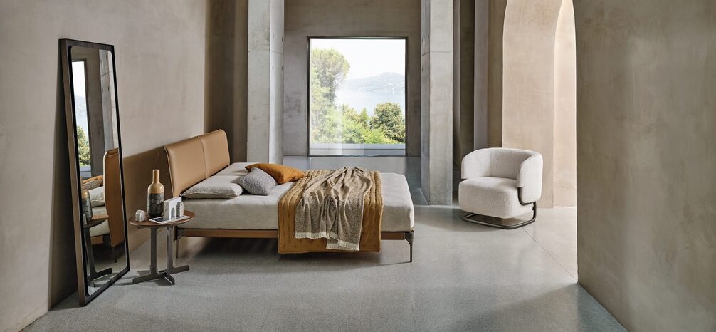 Вдохновленная одноименным диваном, кровать Ada сохраняет ту же неформальную, но утонченную концепцию парения, как самолет