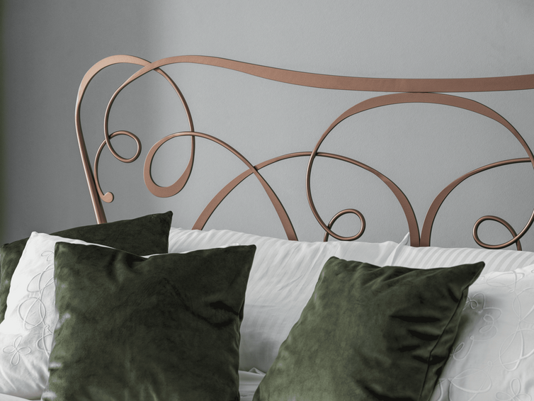 Кровать из лакированного или патинированного вручную железа, двуспальная версия, с изножьем, каркасом или контейнером