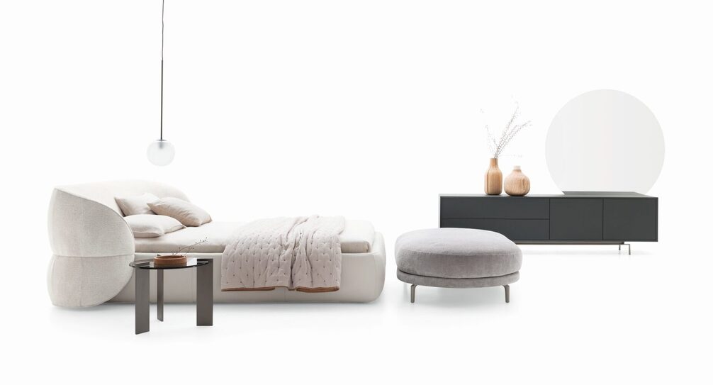 Круглый и драматичный. Качества, которые делают спальню эксклюзивной. Скульптурное воздействие этой кровати лучше всего ощущается, когда она находится в центре комнаты.