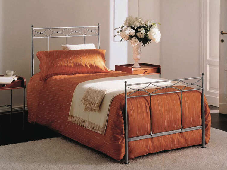 Кровать из лакированного или патинированного вручную железа, одинарная или одинарная версия, с изножьем, каркасом кровати или контейнером. Доступен в размерах: 98х204х119/76 128х204х119/76 98х200х119 98х214х119 128х200х119