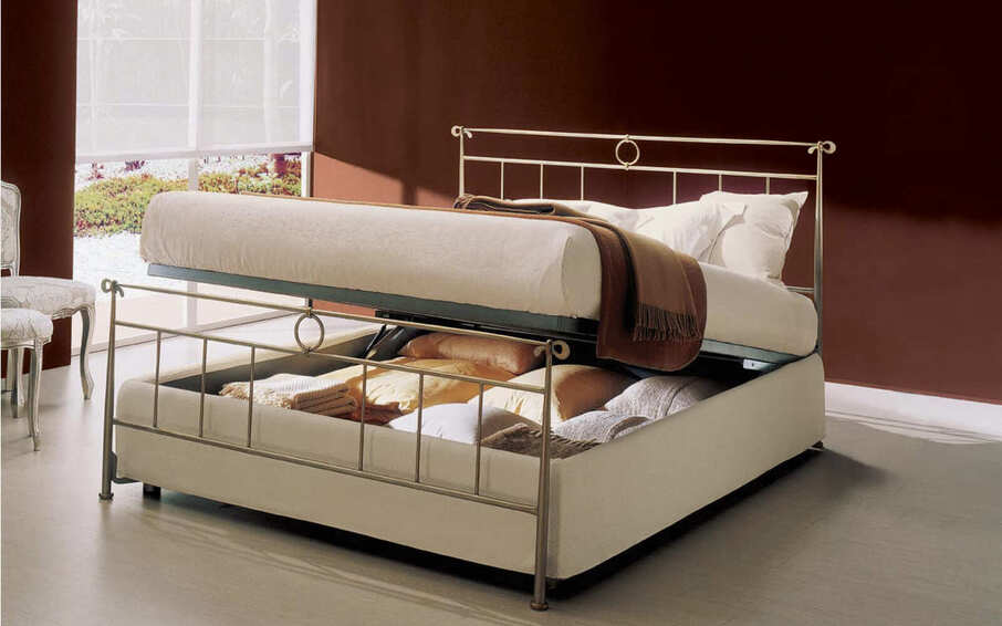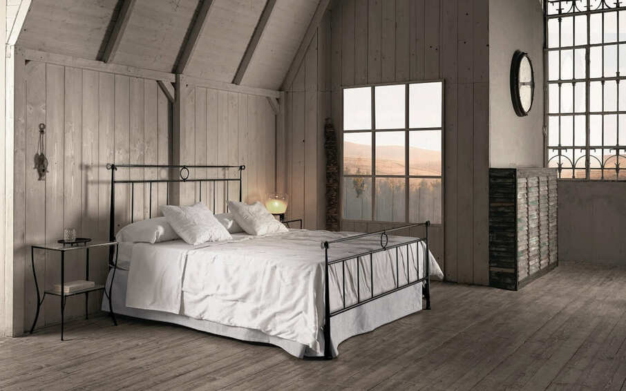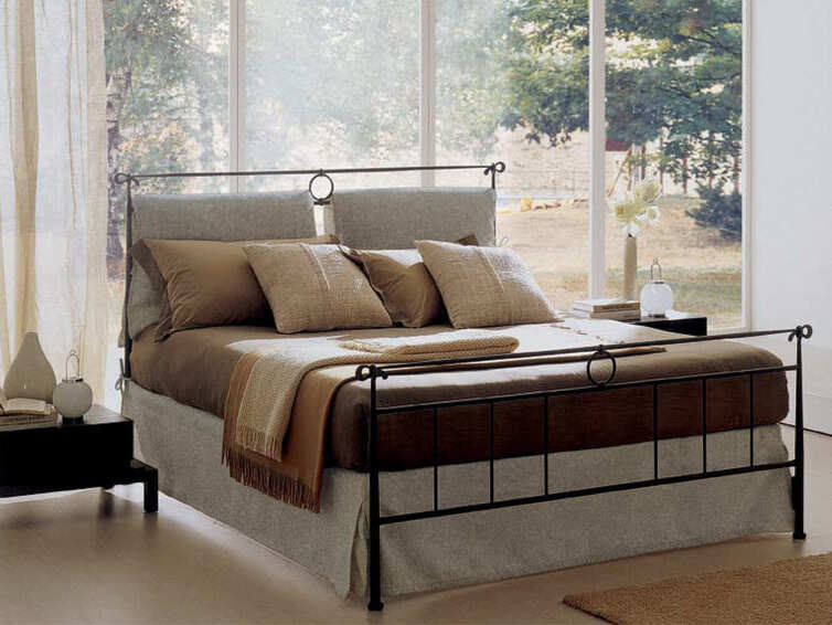 Кровать из лакированного или патинированного вручную железа, двуспальная версия, с изножьем, каркасом или контейнером. Доступен в размерах: 175х208х119/73 175х200х119 175х222х119/73 175х214х119