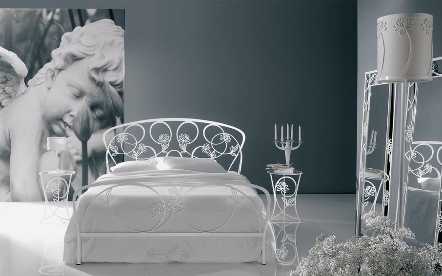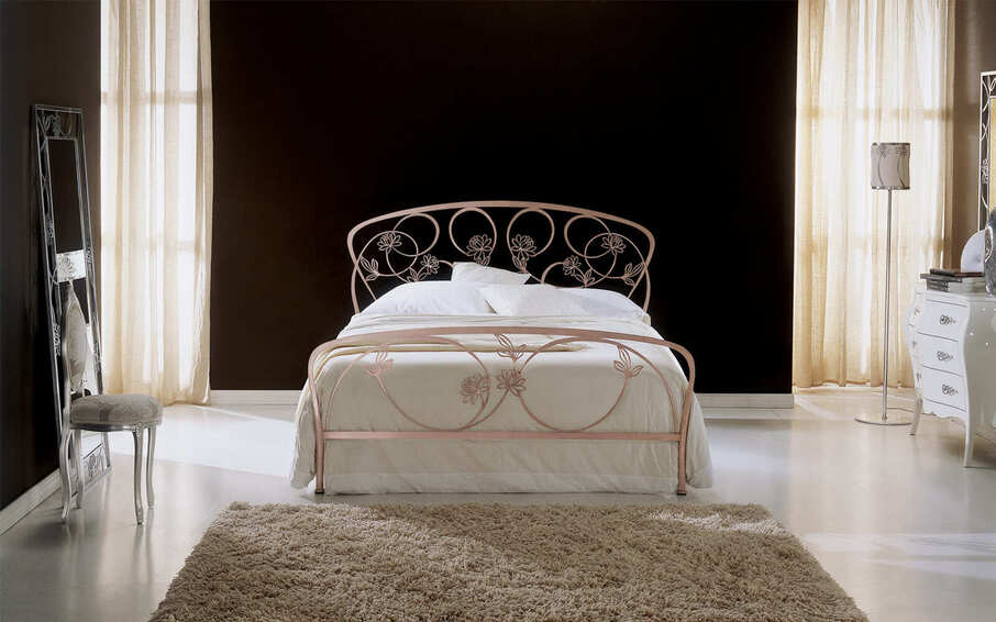 Кровать из лакированного или патинированного вручную железа, двуспальная версия, с изножьем, каркасом или контейнером