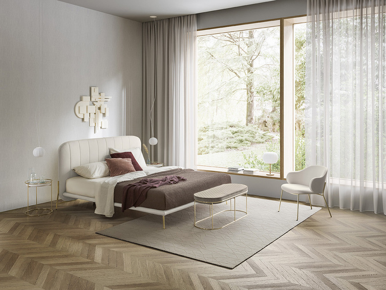 Современная, простая, с гармоничными и элегантными формами, кровать Le Marais легко вписывается как в традиционные, так и в современные комнаты.