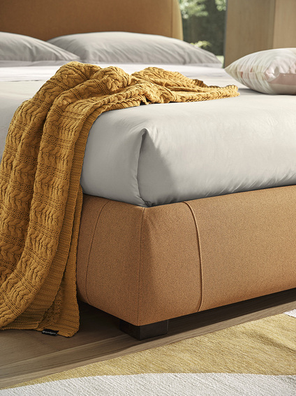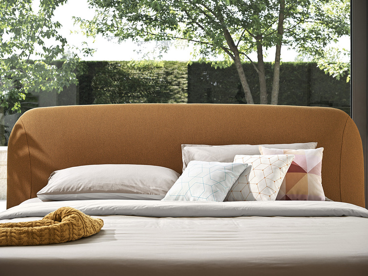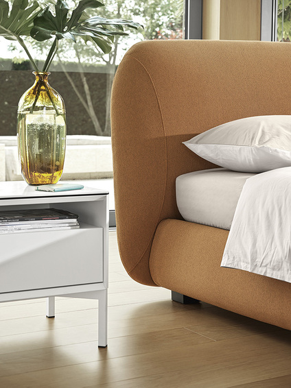 Мягкое и объемное, простое на вид изголовье имеет трехмерную красоту, которая еще больше подчеркивается декоративной строчкой на изогнутых поверхностях. Изделие доступно с тремя вариантами ножек из дерева или с одним вариантом ножек из металла с возможностью выбора внешнего вида и высоты от земли, которые лучше всего подходят покупателю. Noa доступен с фиксированным основанием кровати или контейнерным блоком. Может быть обтянут тканью или кожей.