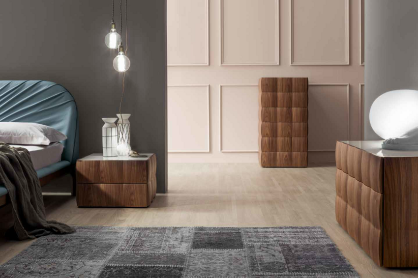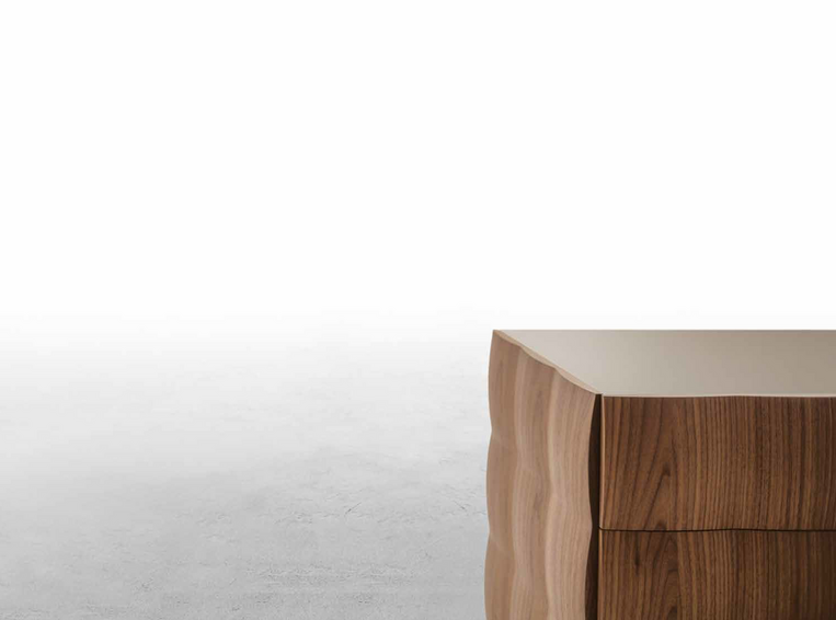 Модель выполнена из МДФ с микротиснением и лазерной обработкой, создающей эффект капитоне и придающей жесткому материалу вид мягкой подушки. Цвета варьируются от непрозрачного белого, до черного, бежевого и матового шампанского. Теперь в наличии еще более элегантная и привлекательная модель из черного ореха, которая придаст штрих классической элегантности этому невероятно инновационному решению.