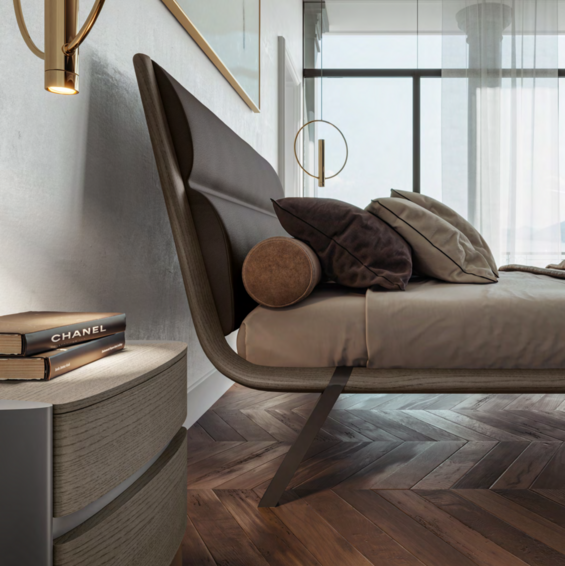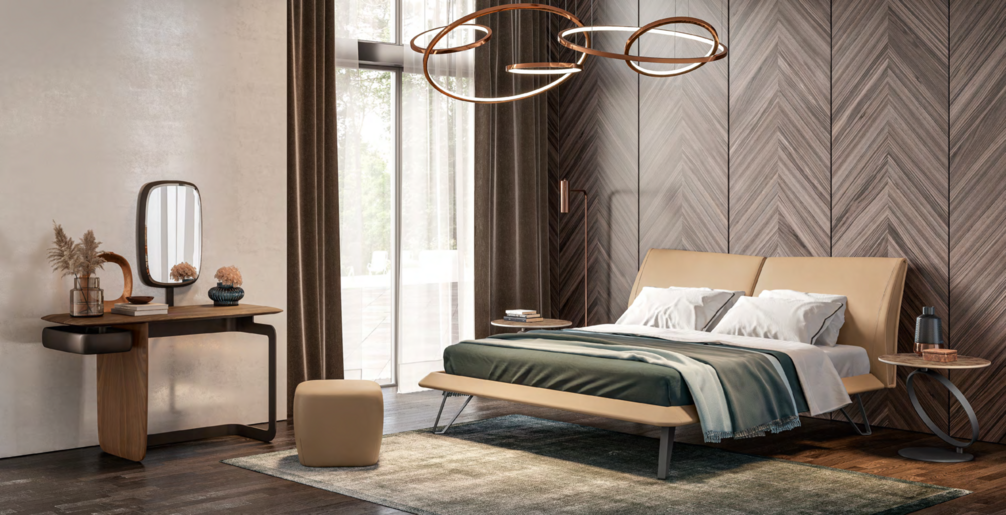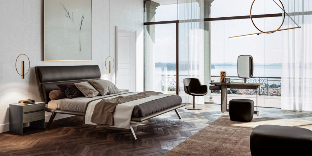 Минималистичная кровать Sailor обеспечивает максимальный комфорт благодаря мягкому изголовью, пересекаемому элегантной строчкой. Всё выглядит элегантно благодаря структуре из темного ясеня и окрашенным металлическим ножкам. Туалетный столик создает уютный уголок и расширяет функциональность комнаты. Классический предмет мебели приобретает свежий, современный и новый стиль.