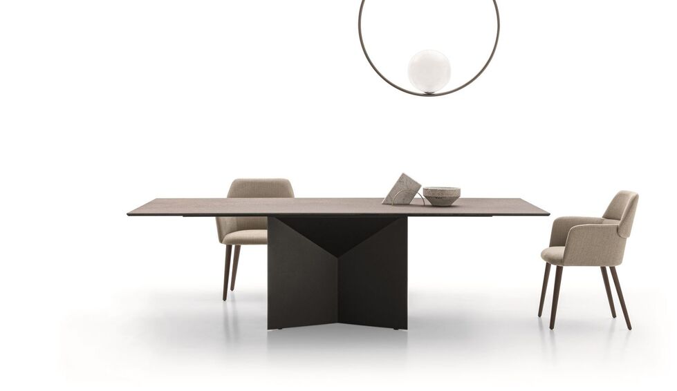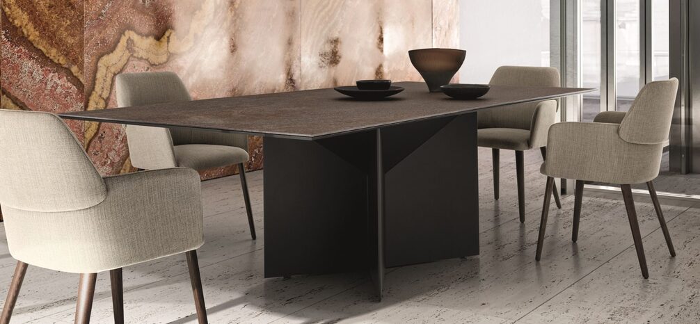 Стол со скульптурным центральным основанием, состоящим из тонких металлических распорок