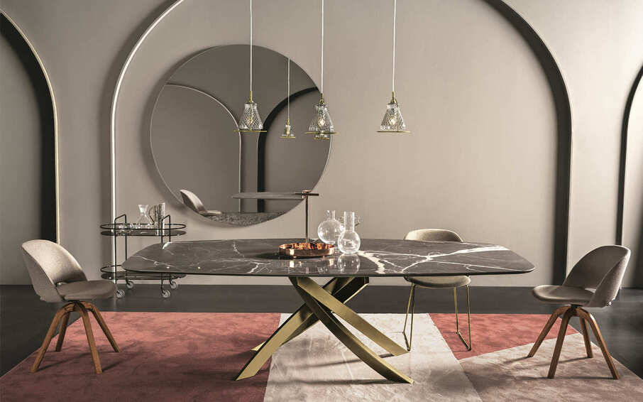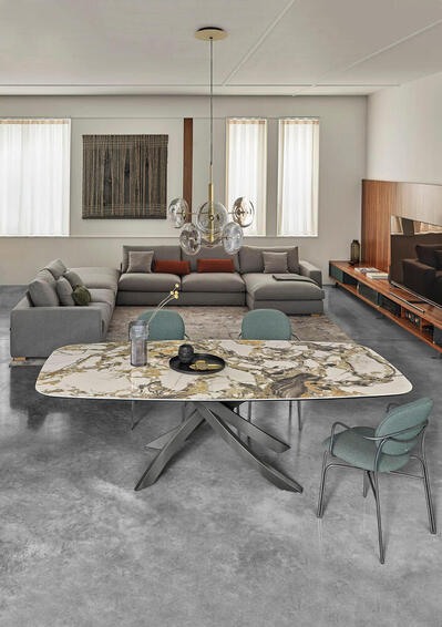 Неподвижный и раздвижной стол со структурой из лакированной стали. Столешница из массива дерева, векового массива дерева, массива дерева, шпона дерева, лакированного дерева, хрусталя, хрусталя с защитой от царапин, суперкерамики, супермрамора и натурального мрамора. Доступен в прямоугольной форме и в размерах: 160х75х90 180х75х106 200х75х100 200х75х106 250х75х100 250х75х106 170/210/250x75x106 200/250/300x75x106 200x75x100 200x75x106 200x75x116 250x75x100 250x75x120 160/200/240x75x90 190/240/290x75x100 190/240/290x75x106