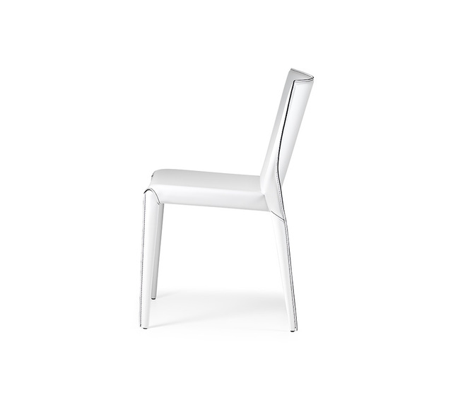 Стул с металлическим каркасом. Обложка из кожи согласно образца карты. Стандартная или контрастная строчка. Доступен в размере: 49x57x87h