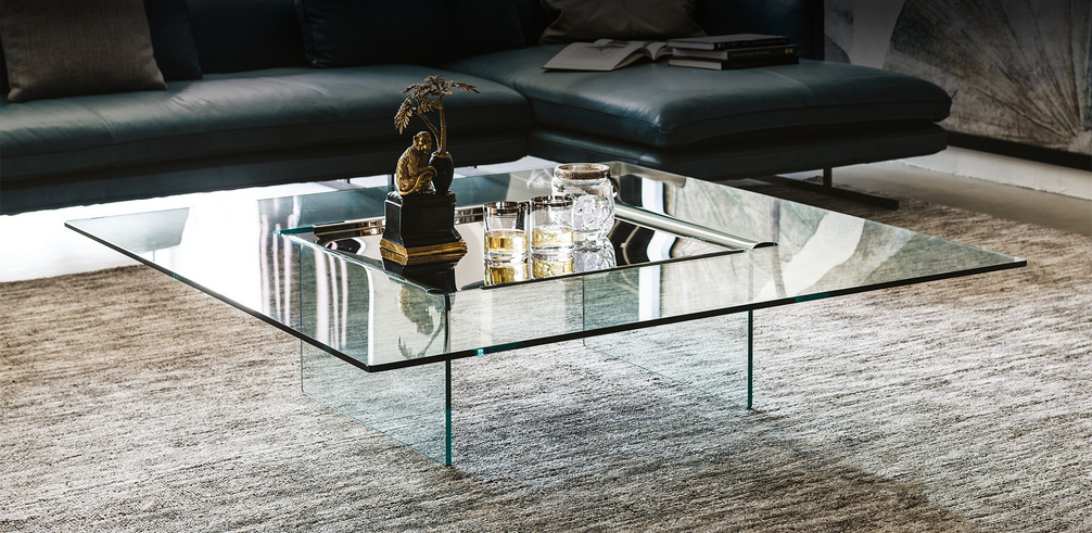 Стеклянный журнальный столик Carrè — это дань уважения Джорджио Каттелану месту, где была основана компания Cattelan Italia.