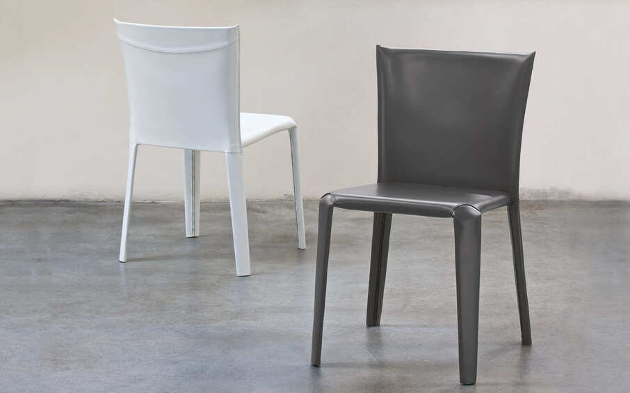 Стул со стальной конструкцией, полностью обтянутый кожей