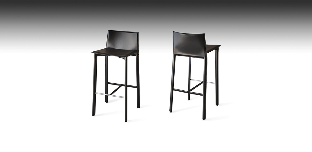 Табурет со стальным каркасом, обтянутым кожей согласно образцу карты. Стандартный шов. Представлен в размерах: 45x47x96h 45x47x84h