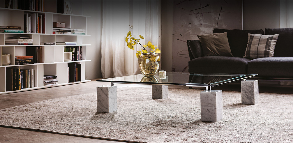 Dielle, разработанный Пьеро Де Лонги, является одним из самых долговечных и культовых продуктов компании, стеклянным журнальным столиком для гостиной с острым скульптурным характером.