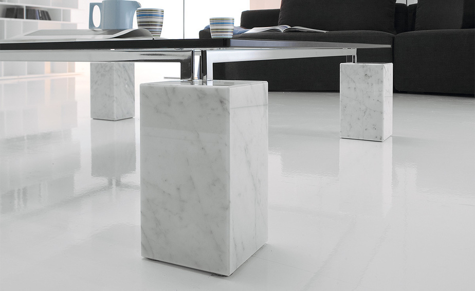Журнальный столик с основанием из белого каррарского или черного Marquina мрамора. Хромированные или черные металлические стержни. Прозрачный стеклянный верх. Доступен в прямоугольной и квадратной форме и в размерах: 100x100x40h 120x120x40h 120x80x40h