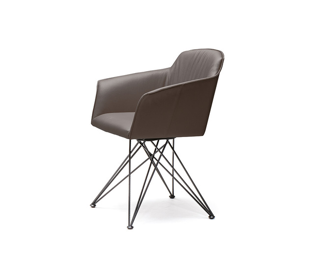 Вращающийся стул с подлокотниками или без них с каркасом из лакированной стали с тиснением под графит, белый или черный цвет. Сиденье и спинка обиты тканью, синтетическим нубуком, микронубуком, синтетической кожей или мягкой кожей в соответствии с картой образцов. Крышка не съемная. Доступен в размерах: 57x61x83h 67x61x83h