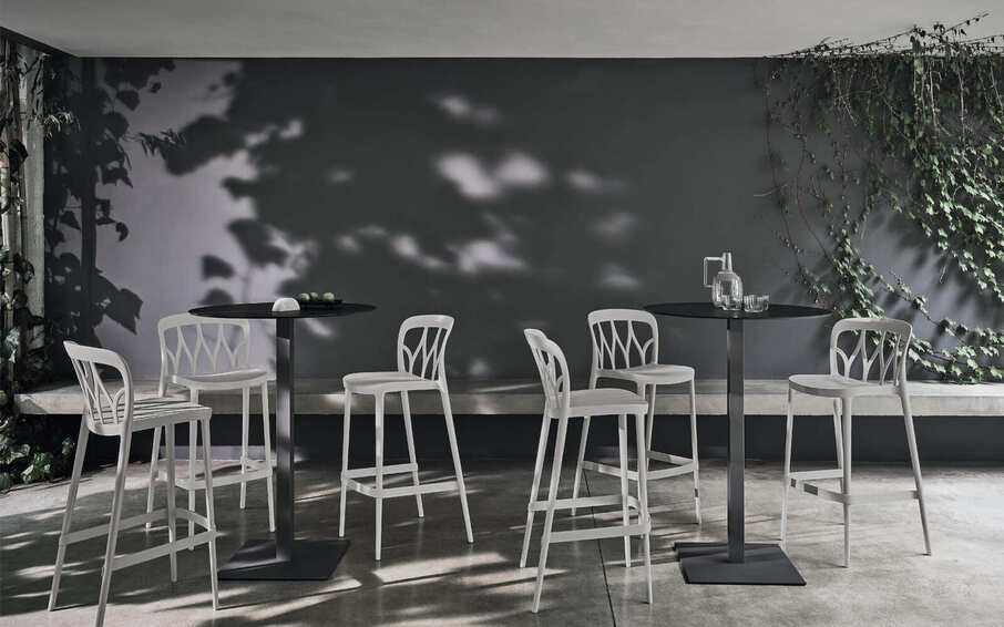 Штабелируемый табурет с цельной конструкцией из полипропилена и перерабатываемого стекловолокна