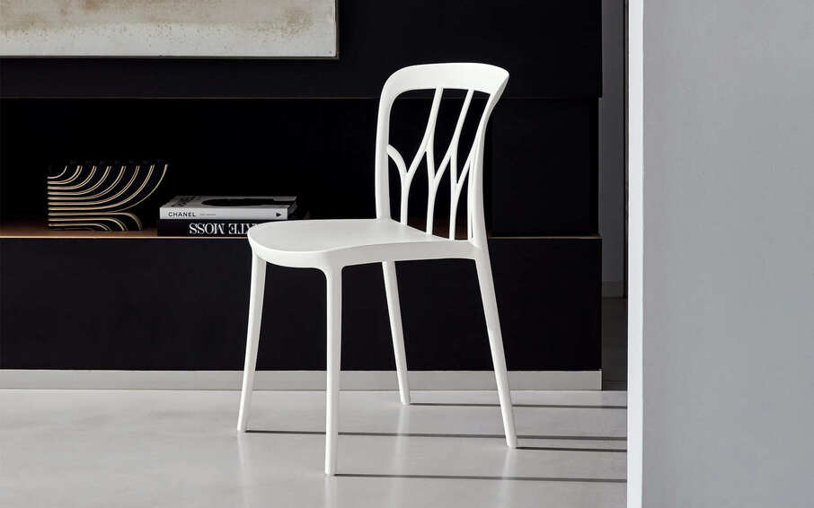 Стул с подлокотниками или без них с цельной конструкцией из полипропилена и перерабатываемого стекловолокна
