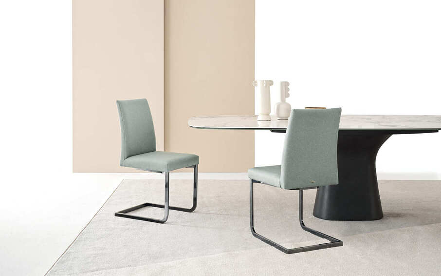 Стул и кресло со структурой из лакированной стали, монокок с мягкой обивкой. Доступен в размерах: 45х53х85/48 45х54х92/49 61х56х85/48