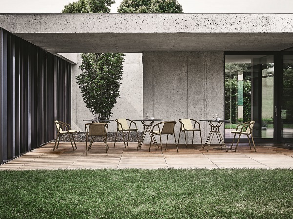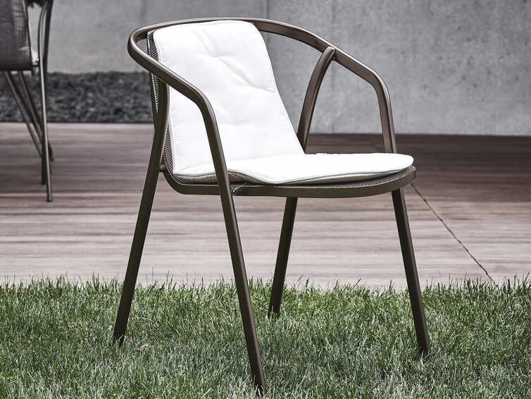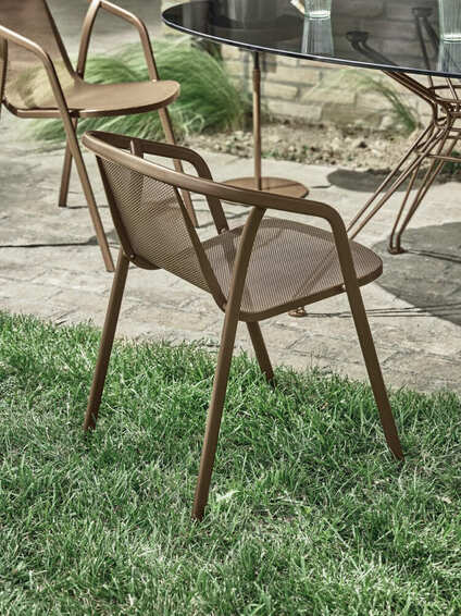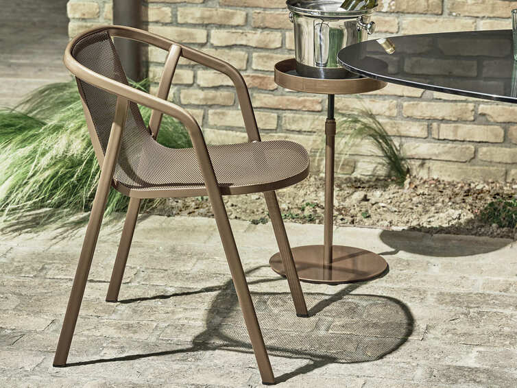 Стул со структурой из лакированной стали для улицы. Доступен в размерах: 44х41х35 54х58х76/46