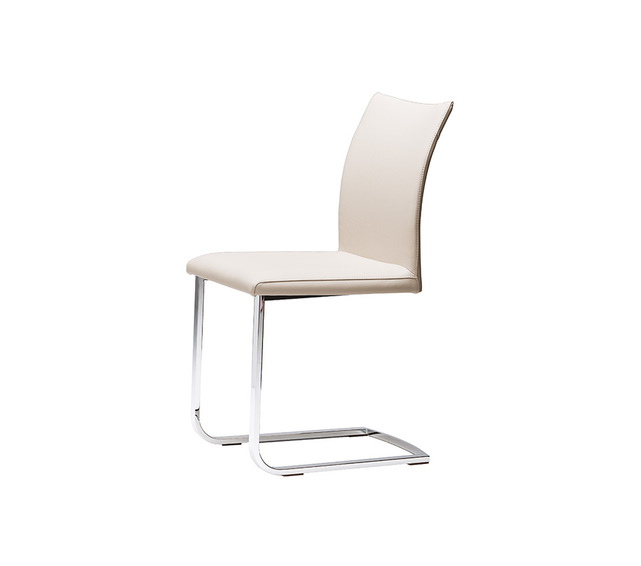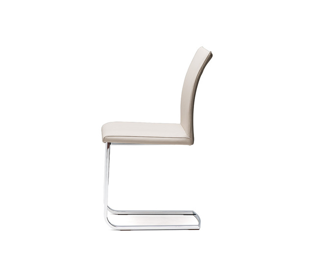 Стул с консольной рамой из хромированной стали (08). Сиденье с обивкой из ткани, синтетического нубука, микронубука, синтетической кожи или мягкой кожи в соответствии с картой образцов. Крышка не съемная. Доступен в размере: 46x55x88h