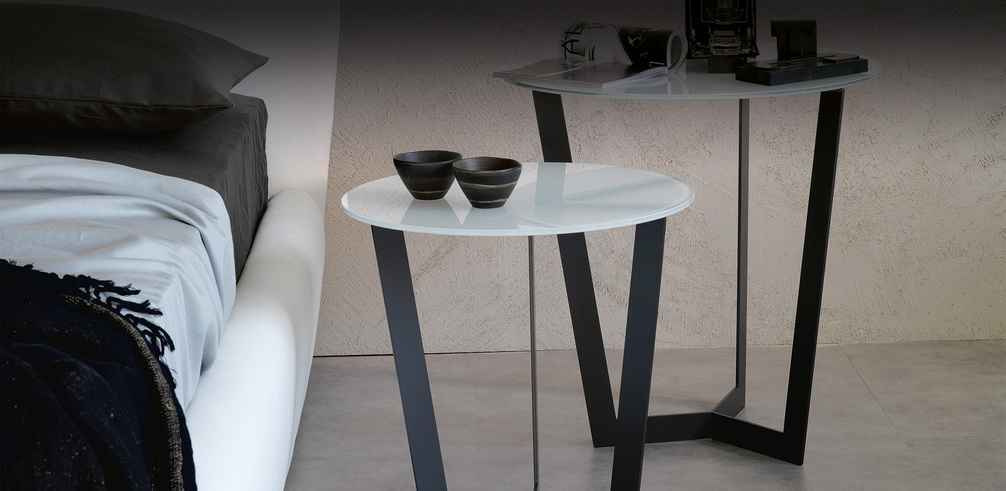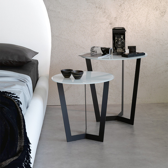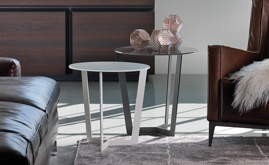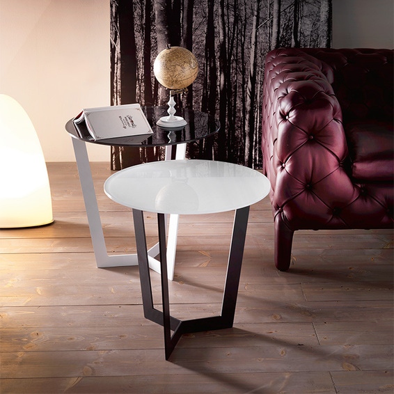 Журнальный столик из стали, окрашенной в белый матовый или графитовый цвет. Закаленная столешница толщиной 8 мм из особо прозрачного белого, графитового или окрашенного в цвет устрицы стекла. Доступен в круглой форме в размерах: ø45x46h ø50x51h ø55x56h
