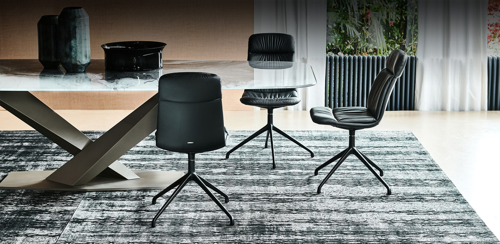 Контраст между объемными складками и натянутой оболочкой дает жизнь соблазнительным и удобным современным стульям семейства Kelly.