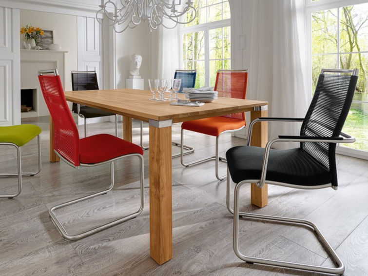 - сиденье: выбираемое - спинка: Flextex - рама: имитациянержавеющей стали,стул скруглыми трубками -сиденье с подушкой из пеноматериала - с пластиковыминакладкамивстандартной комплектации - опционально с войлочными накладками - макс. загружается до 140 кг.