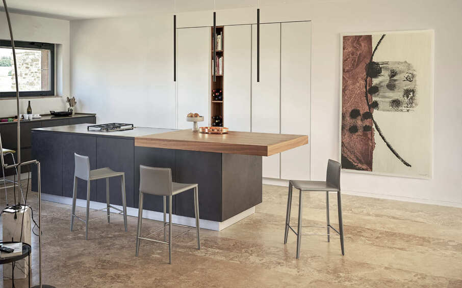 Табурет со стальной конструкцией полностью обит. Доступен в размерах: 43х48х86/65 44х50х96/75