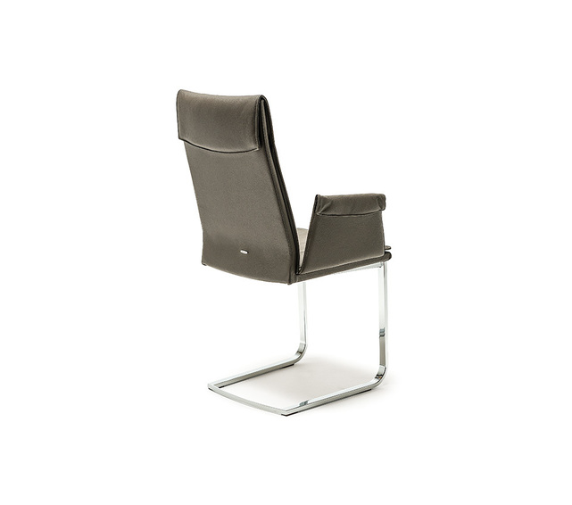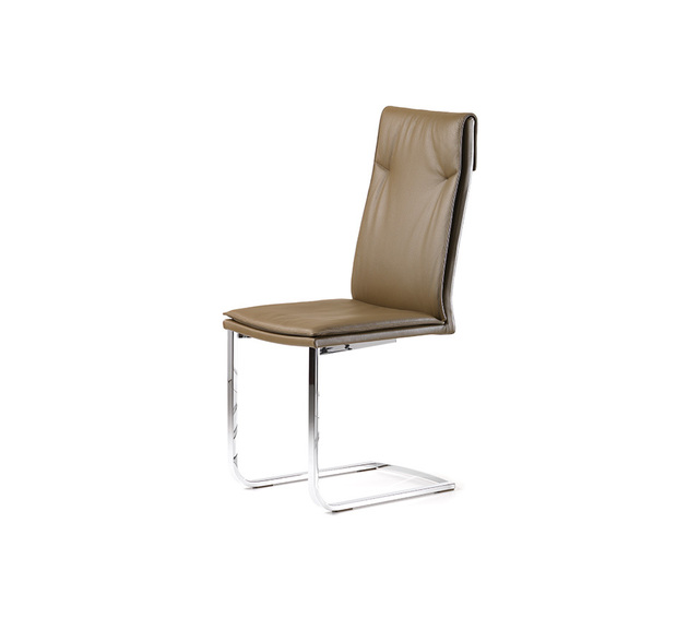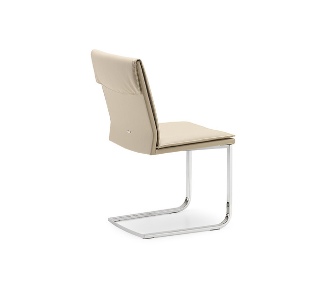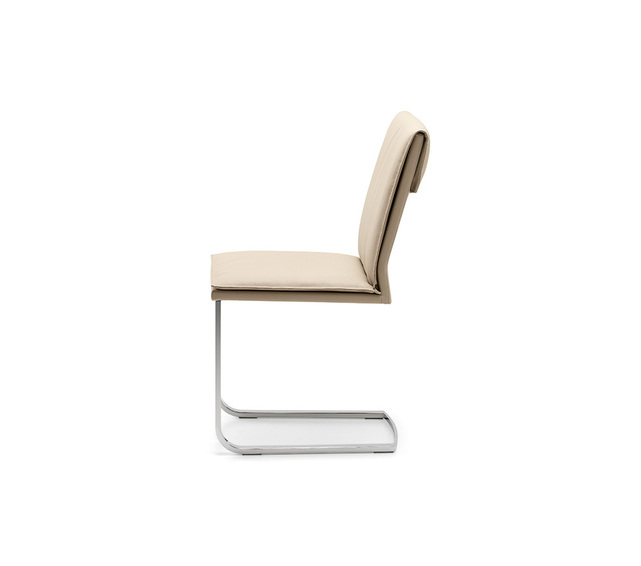 Стул с подлокотниками или без них с консольной рамой из хромированной стали. Сиденье с обивкой из ткани, синтетического нубука, синтетической кожи или мягкой кожи в соответствии с картой образцов. Крышка не съемная. Доступен в размерах: 44x55x86h 55x55x86h 44x55x102h 55x55x102h