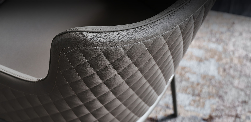 Стул с подлокотниками или без них с каркасом из стали с тиснением из титана, бронзы, графита, белого или черного лака. Обложка из синтетического нубука, мягкой кожи или синтетической кожи в соответствии с картой образцов. Стеганый чехол на спинку сиденья. Крышка не съемная. Доступен в размерах: 53x59x81h 53x59x81h