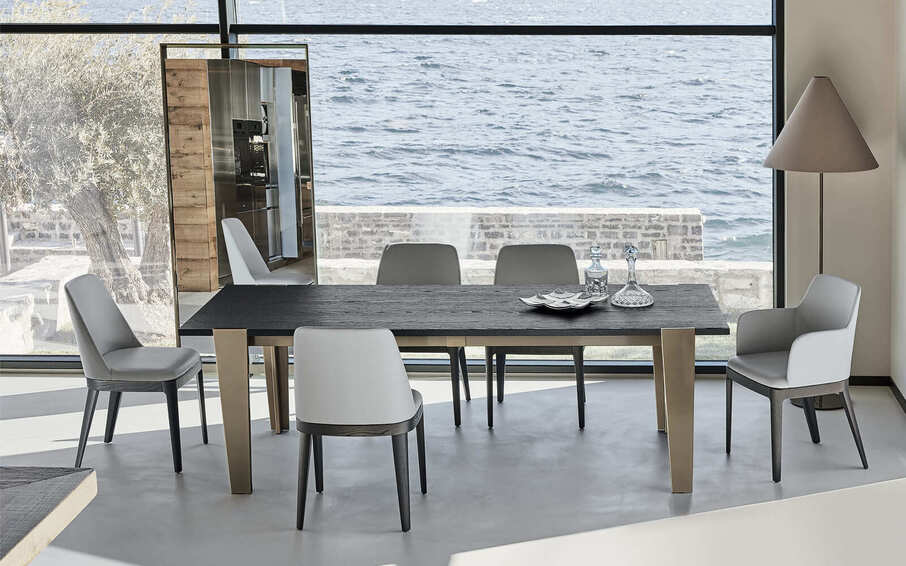 Стол со структурой из лакированной стали и столешницей из суперкерамики и супермрамора. Доступен в прямоугольной форме и в размерах: 170х75х90 200х75х100 240х75х100 170/270x75x90 200/295x75x100