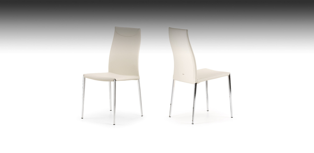 Стул со стальной структурой в хромированном, черном хромированном, белом, графитовом, титановом или бронзовом исполнении. Обложка из ткани, синтетического нубука, микронубука, мягкой кожи или синтетической кожи в соответствии с картой образцов. Чехлы из мягкой кожи, синтетического нубука, микронубука и синтетической кожи не снимаются. Гибкая спинка. Доступен в размерах: 46x56x96h