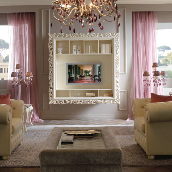 Классический стиль возрождается и переосмысливается в современной моде. Держатель для телевизора в рамке вписывается в этот проект мебели, в котором дизайн и креативность превращаются в решения со свежим современным вкусом.