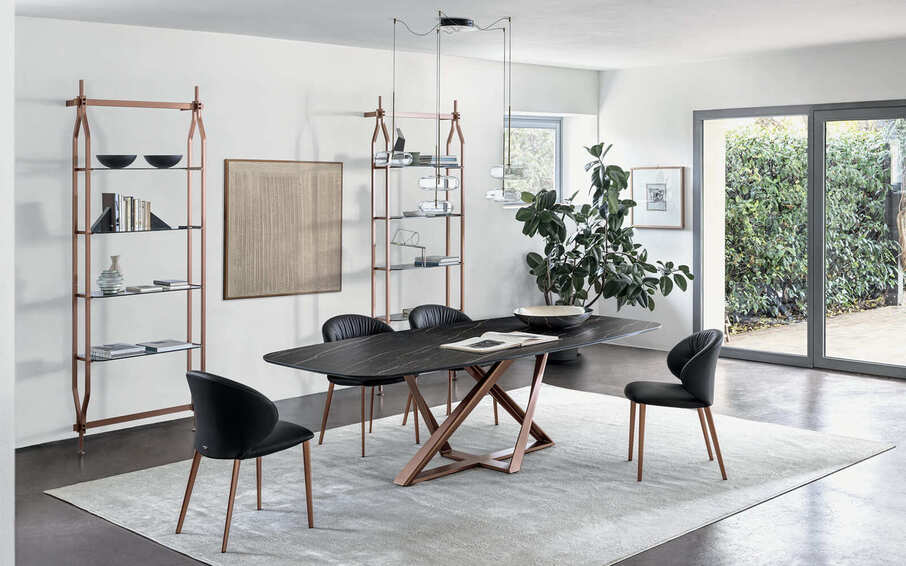 Неподвижный и раздвижной стол со структурой из лакированной стали. Столешница из массива дерева, векового массива дерева, массива дерева, шпона дерева, лакированного дерева, хрусталя, устойчивого к царапинам хрусталя, суперкерамики и супермрамора. Доступен в прямоугольной и круглой форме и в размерах: 160х75х90 180х75х106 200х75х100 200х75х106 200х75х116 220х75х106 250х75х106 250х75х120 300х75х120 160/200/240x75x90 160/200/240x75x90200x75x100 200x75x106 250x75x100 160/200/240x75x90 190/240/290x75x100 190/240/290x75x106