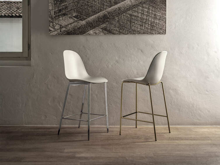 Табурет со структурой из лакированной стали для улицы, с круглым и треугольным сечением и корпусом из полипропилена. Доступен в размерах: 47х55х102/65 48х56х112/75 47х55х112/75 48х56х102/65