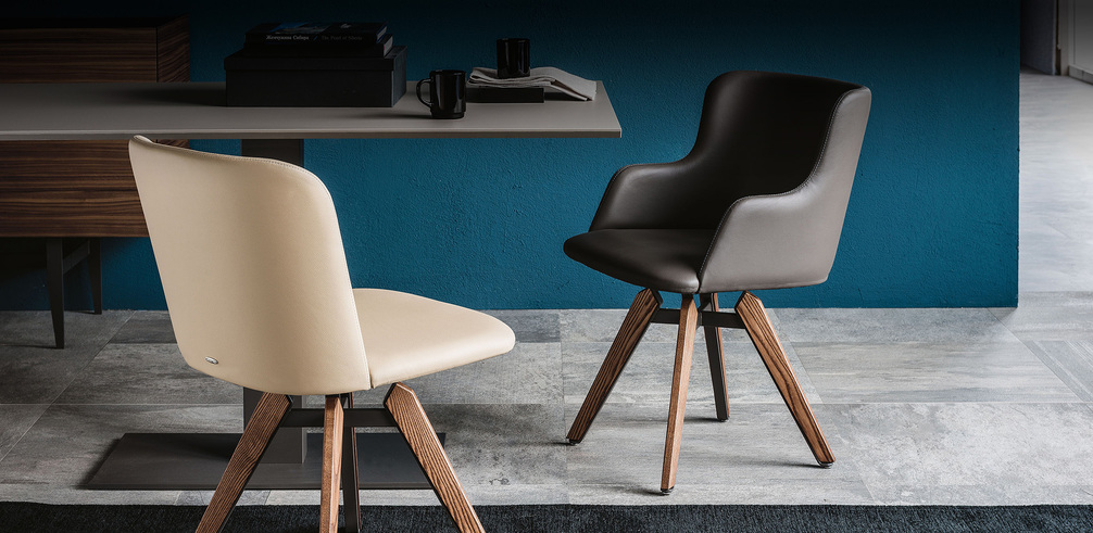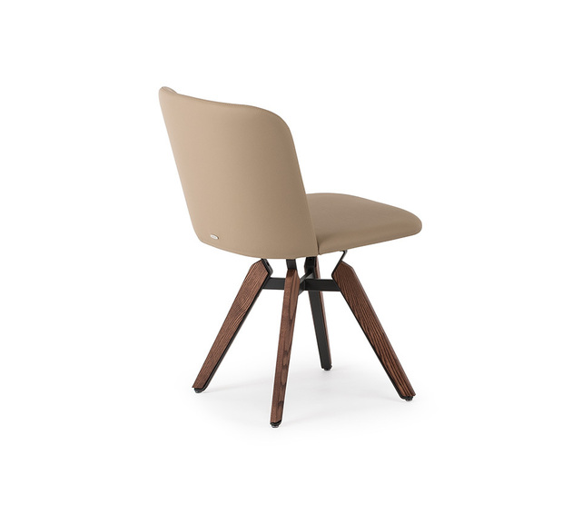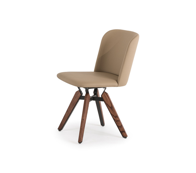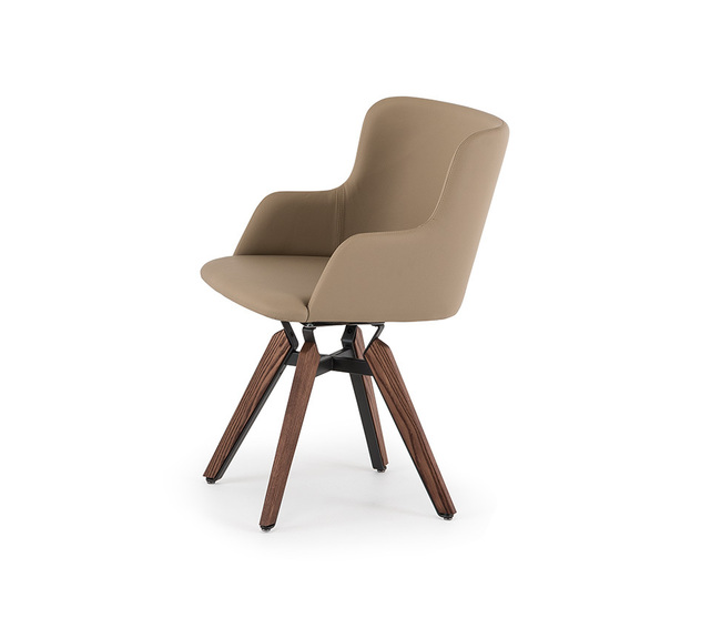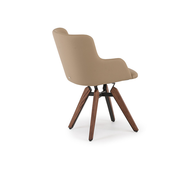 Вращающееся кресло Мулан характеризуется резким контрастом между обволакивающей спинкой и ножками из натурального или окрашенного дерева, которые образуют скульптурную пирамиду с сильным эстетическим эффектом.