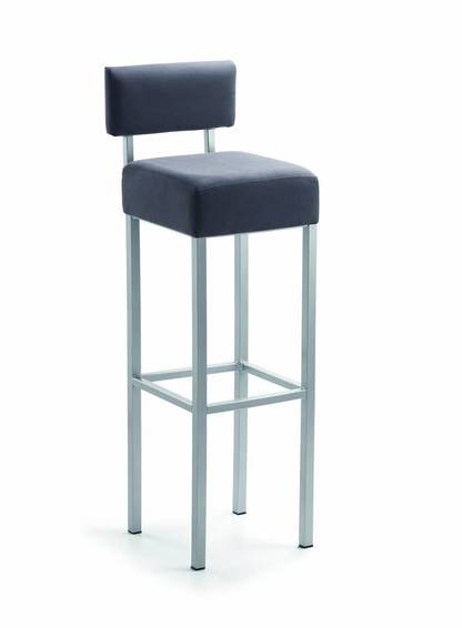 Сиденье и спинка с обивкой, очень высокая. Также доступен без спинки, как барный стул или табурет нормальной высоты.