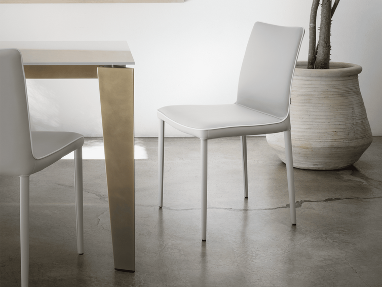 Стул с гибкой или неэргономичной спинкой, в двух версиях с лакированной стальной конструкцией и мягкой и мягкой оболочкой или со стальной конструкцией, полностью обитой экокожей, экокожей премиум-класса, техническим бархатом, тканью Mambo, тканью Lulù, водонепроницаемым нубуком, Водостойкий нубук с принтом, натуральная шерсть, бархат, ткань в стиле деко и кожа премиум-класса. Также доступна версия со стеганой спинкой (только в обивке из водонепроницаемого нубука, экокожи и кожи премиум-класса). Доступен в размерах: 49х57х83/48 49х55х89/48 48х57х83/48