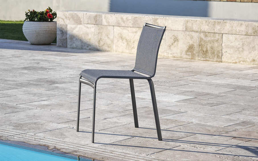 Штабелируемый стул / стул с подлокотниками, со структурой из лакированной стали для улицы, сиденьем и спинками из Texplast или Soft Texplast. Доступен в размерах: 55х59х81/46 48х60х100/65 48х59х81/46