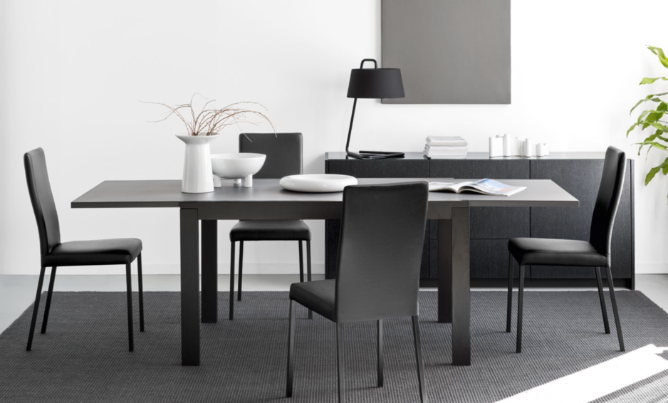 Обеденный стол New Smart - это комбинация традиционных материалов с новыми технологичными материалами (закаленное стекло, керамика)
