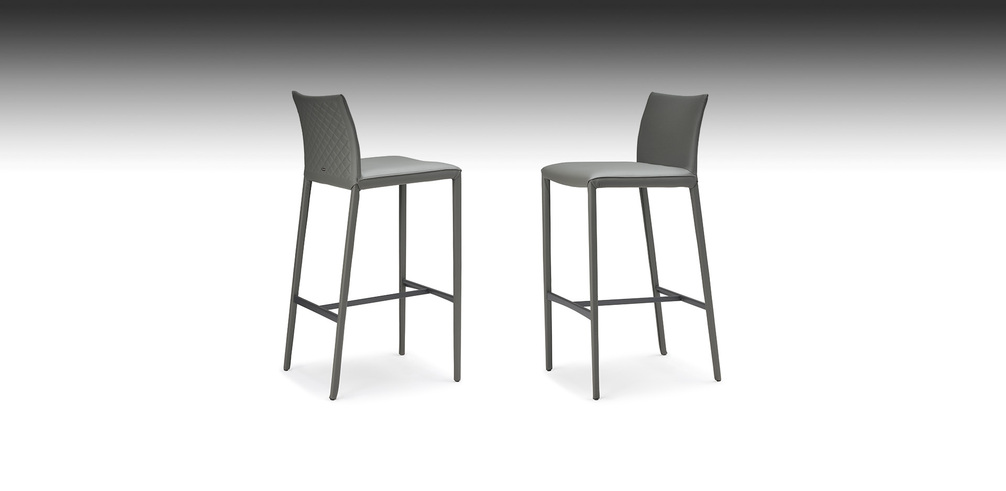 Табурет со стальным каркасом, обтянутым синтетической кожей, синтетическим нубуком, микронубуком или мягкой кожей в соответствии с картой образцов. Стеганый чехол на спинку сиденья. Крышка не съемная. Представлен в размерах: 45x53x104h - А 45x51x94h - Б