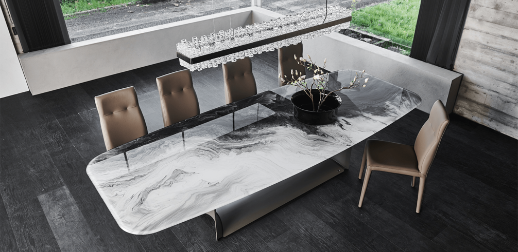 Семейство прямоугольных обеденных столов Dragon — идеальное сочетание краев и округлости.