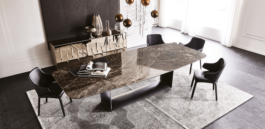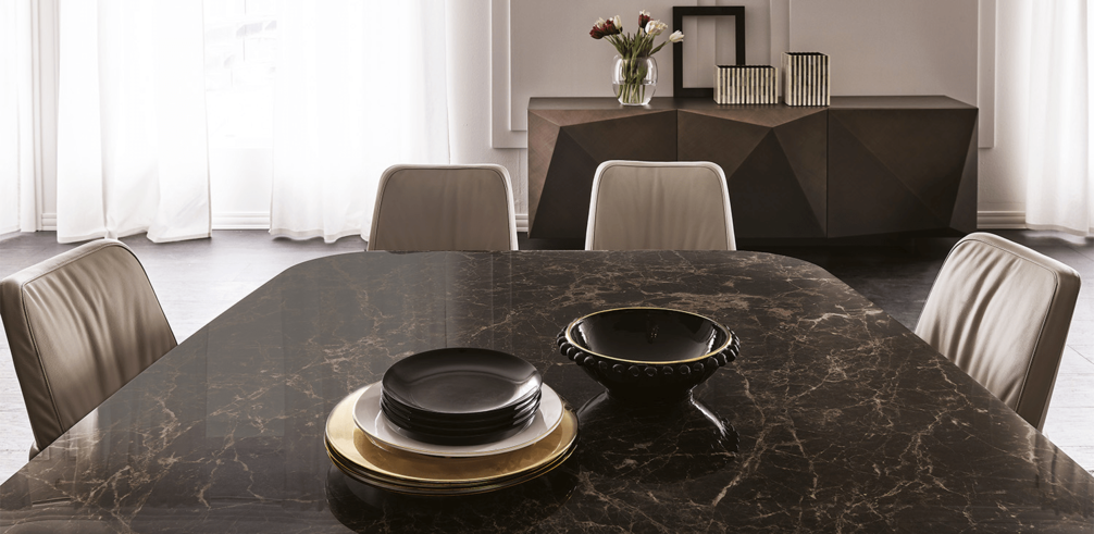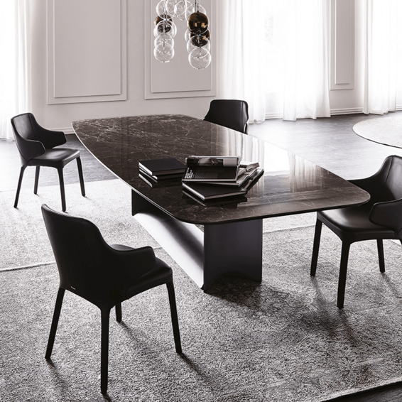 Семейство прямоугольных обеденных столов Dragon — идеальное сочетание краев и округлости.