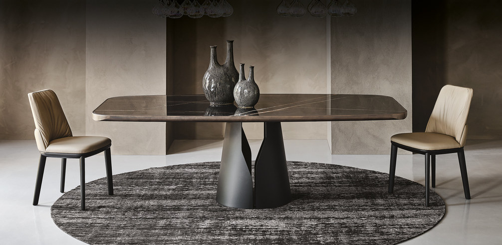Современные столы семейства Giano придают столовой современный минималистский стиль.