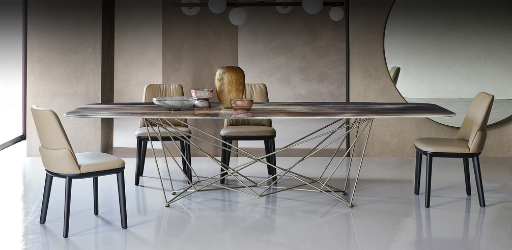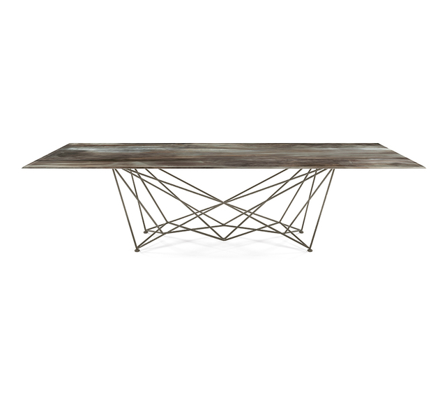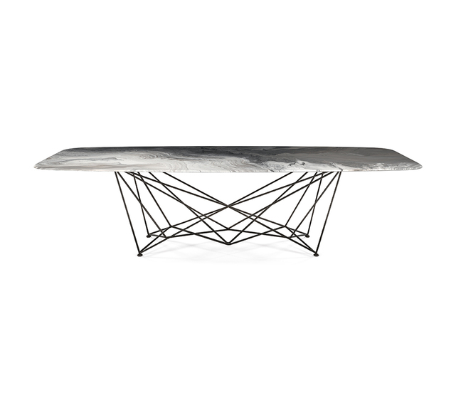 Семейство современных столов Gordon , разработанное Джорджио Каттеланом, выглядит как крест геометрических линий, которые движутся кажущимся хаотичным образом, но вместо этого порядок и планирование создают идеальную симметрию.