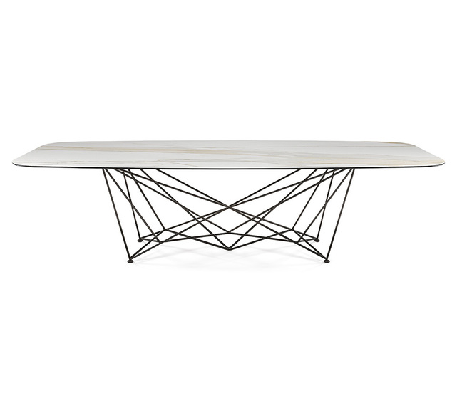 Семейство современных столов Gordon , разработанное Джорджио Каттеланом, выглядит как крест геометрических линий, которые движутся кажущимся хаотичным образом, но вместо этого порядок и планирование создают идеальную симметрию.