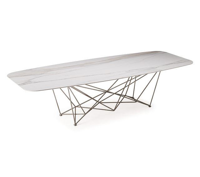 Семейство современных столов Gordon , разработанное Джорджио Каттеланом, выглядит как крест геометрических линий, которые движутся кажущимся хаотичным образом, но вместо этого порядок и планирование создают идеальную симметрию.