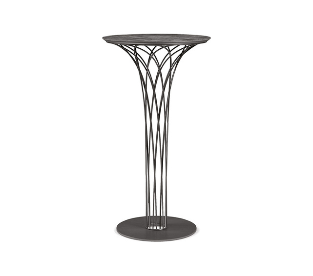 Cтол с основанием из стали с рельефным тиснением под графит, белый или черный цвет. Керамическая столешница Marmi Alabastro, Supreme, Ardesia, матовая Golden Calacatta, глянцевая Golden Calacatta, Makalu, Breccia или Arenal. Доступен в круглой форме и в размерах: ø59,5x106h - А ø78x75h - B ø100x75h - В ø118x75h - B